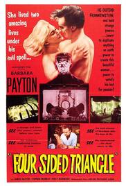![]() | Four Sided Triangle (1953) (BluRay) Bill and Robin, helped by, Lena, develop a "reproducer" which can exactly duplicate any object. Bill, crushed when Lena marries Robin, convi ...<more>